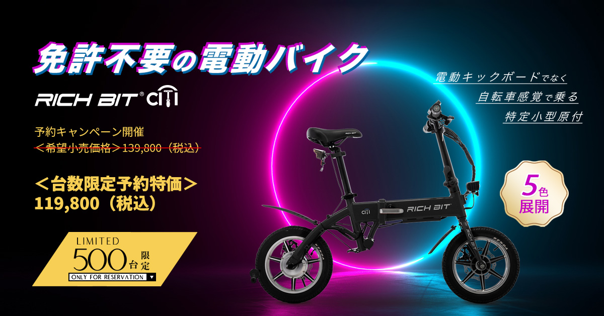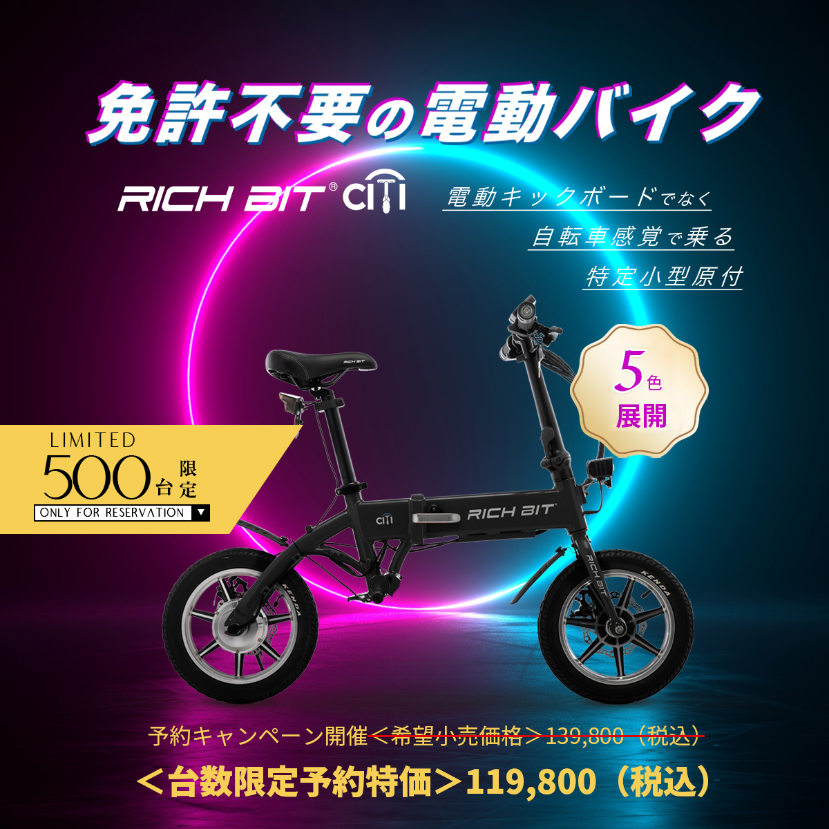 “RICHBIT CITY”は自転車でも電動キックボードでもない、最新型の「特例特定小型原動機付自転車モデル」です。